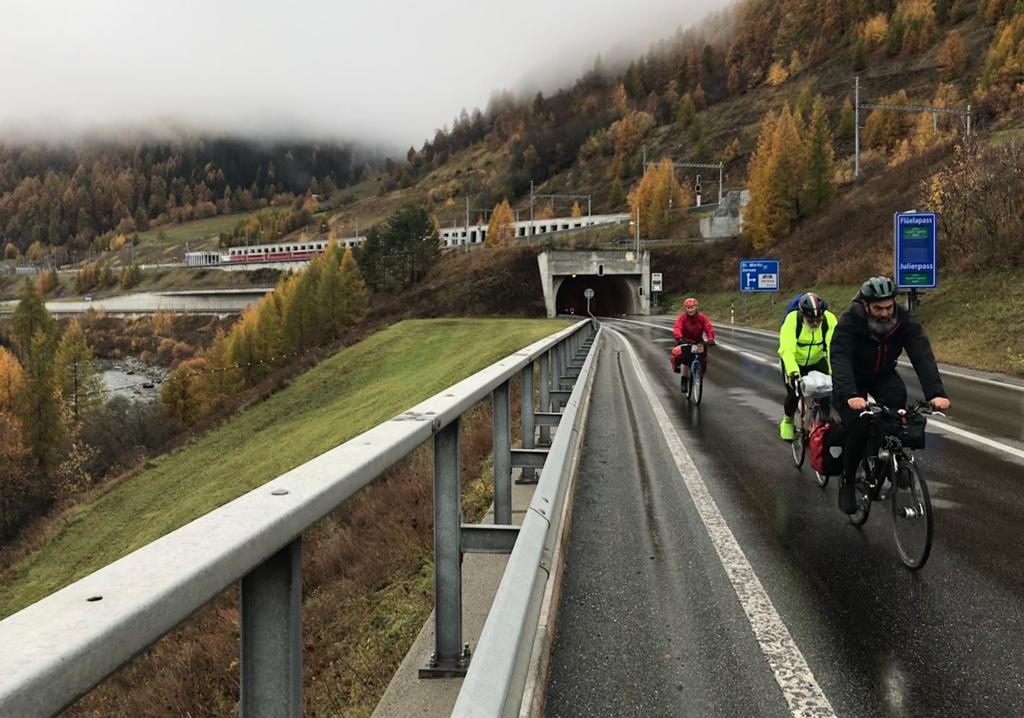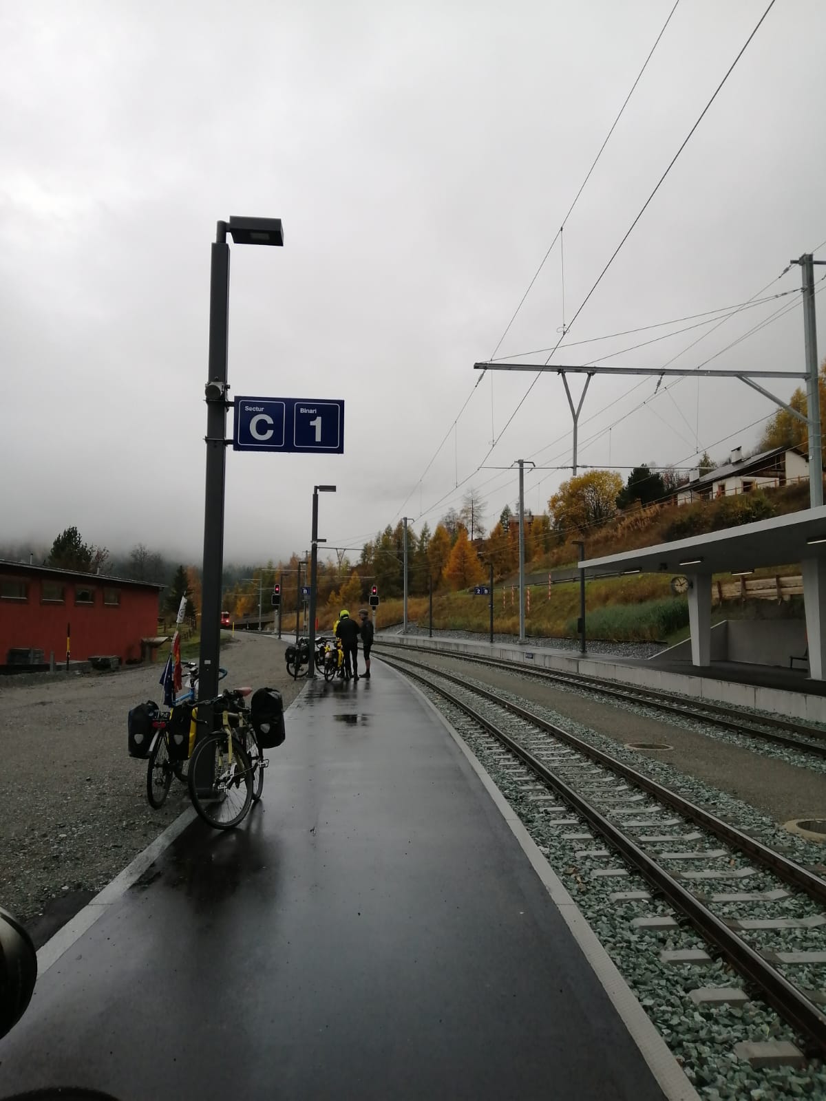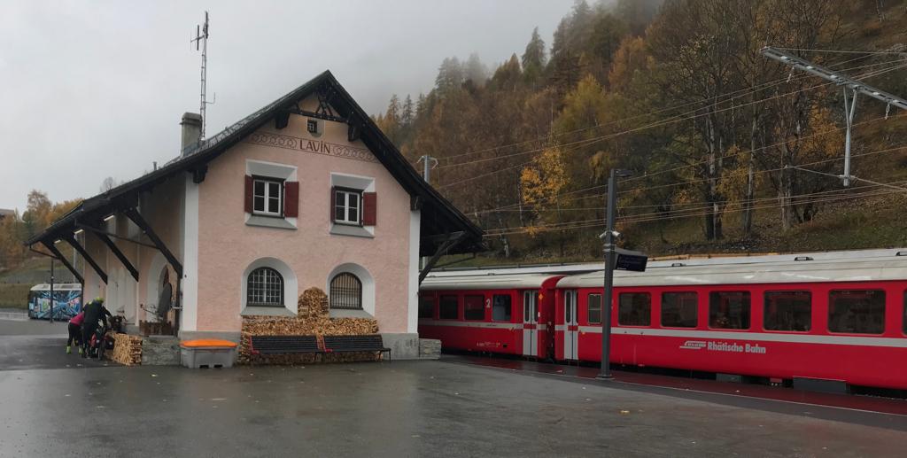 At the start, we were a bit thoughtful due to an unmissable appointment: the 13:59 train to Lavin which would take us through a 20 km tunnel in the heart of the mountain at Kolster Platz.