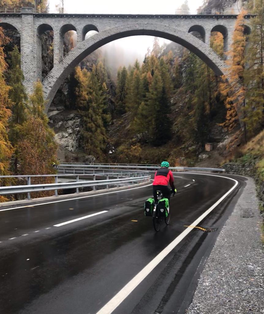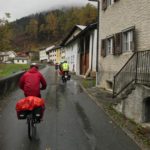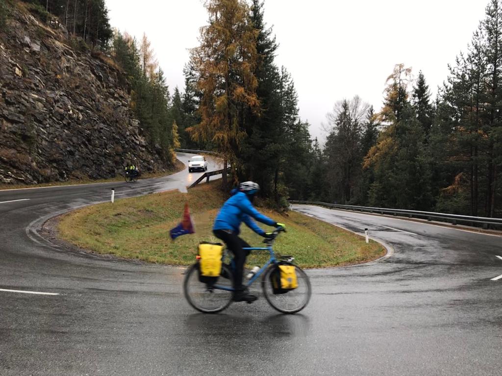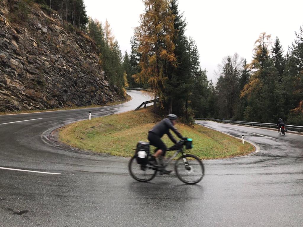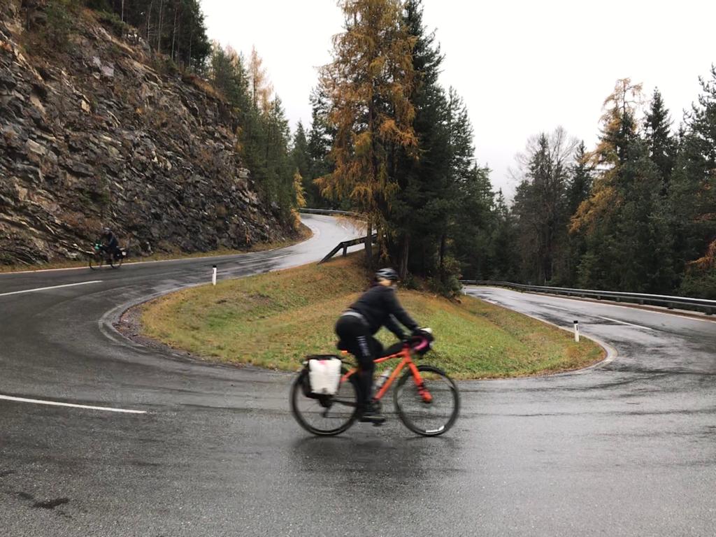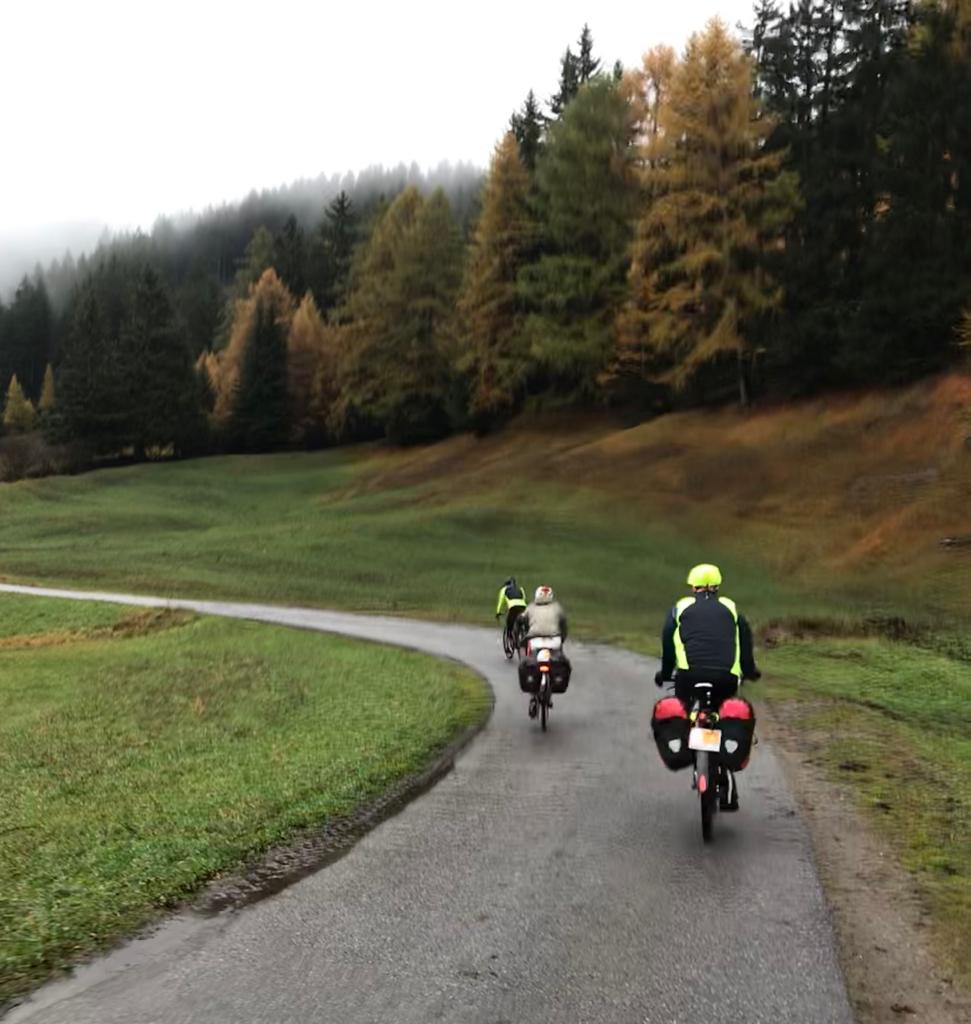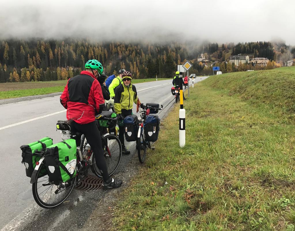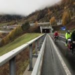 Having missed a deviation of the bike path led us riding along the highway, a nice circumstance despite the rain, which has stopped falling, and a slope that could be more or less around 3- 5%. The way has proved to be pleasant bike ride that everyone decided to stay there. This led us to avoid some hill and to arrive one hour earlier at Lavin’ station…none of us would have bet a single euro on it the night before.