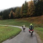this time we were riding on the right path. After a long (and cold) way down we crossed the Swiss border where Maurizio fell in the last corner (it is not yet clear if it was Italian or Swiss territory) without any serious consequences, except for a bump on his hip that we hope it will not cause him too many problems in the following days. Here Franz said goodbye to us, and turned in the direction of Innsbruck, on his way home.