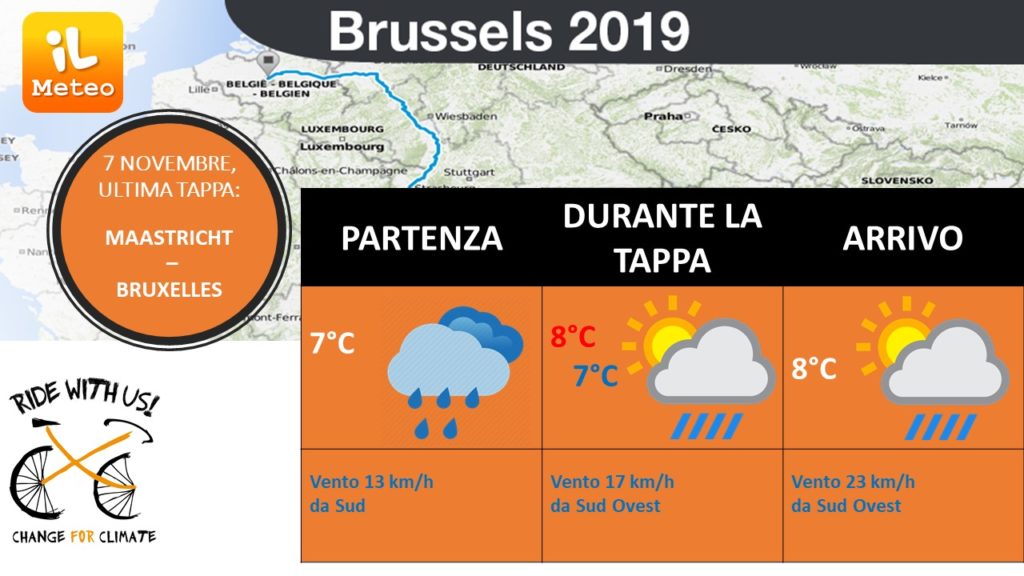 L’arrivo conclusivo di questa avventura è previsto a Bruxelles con ancora molte nubi e la possibilità di piovaschi.