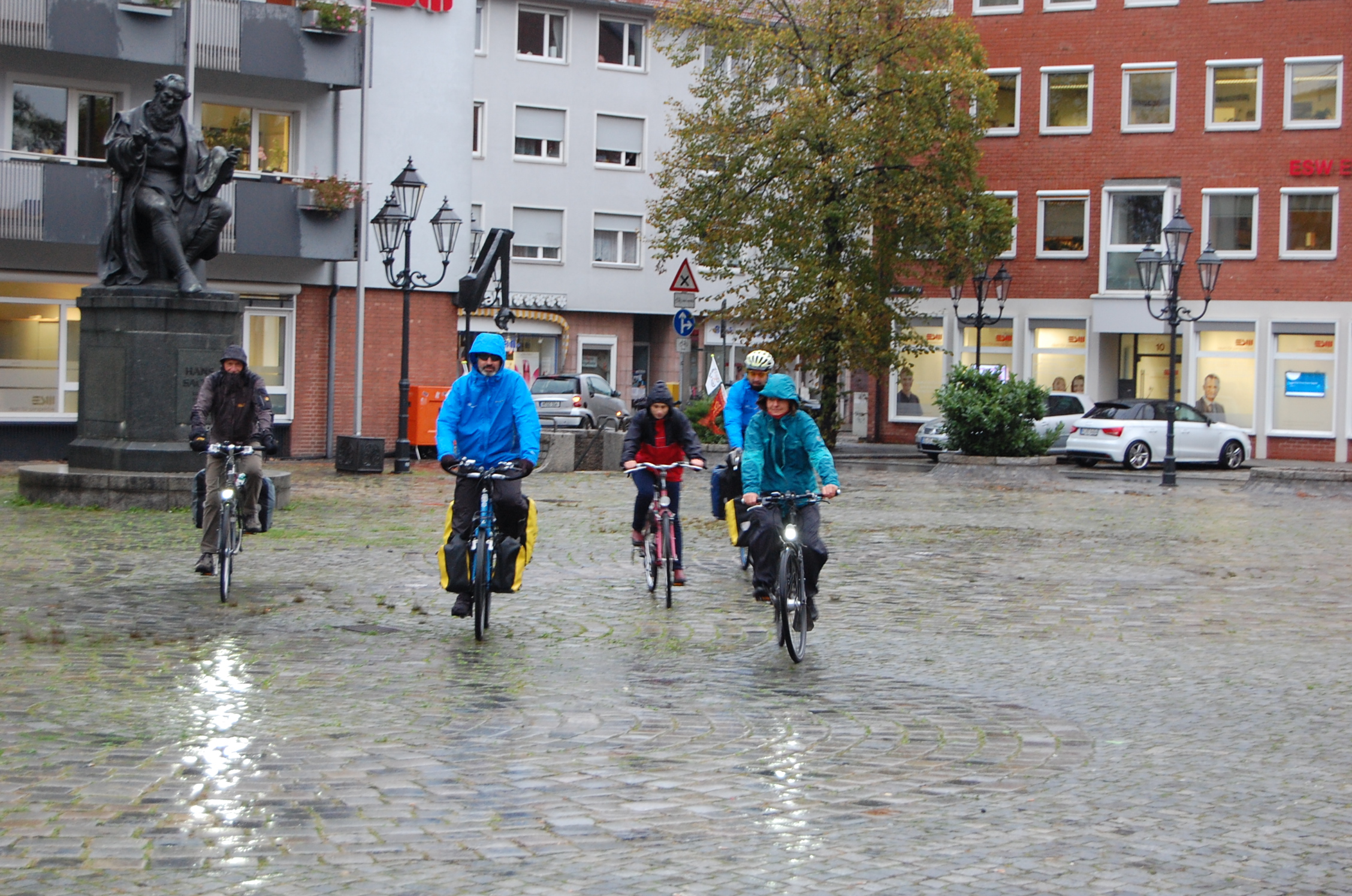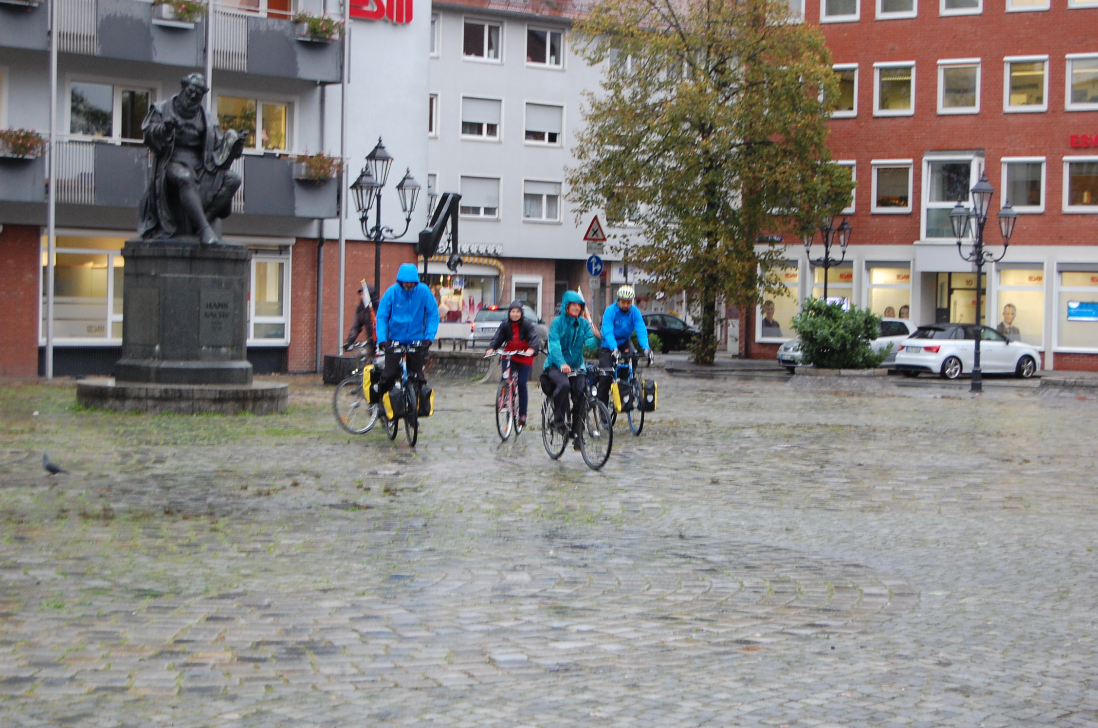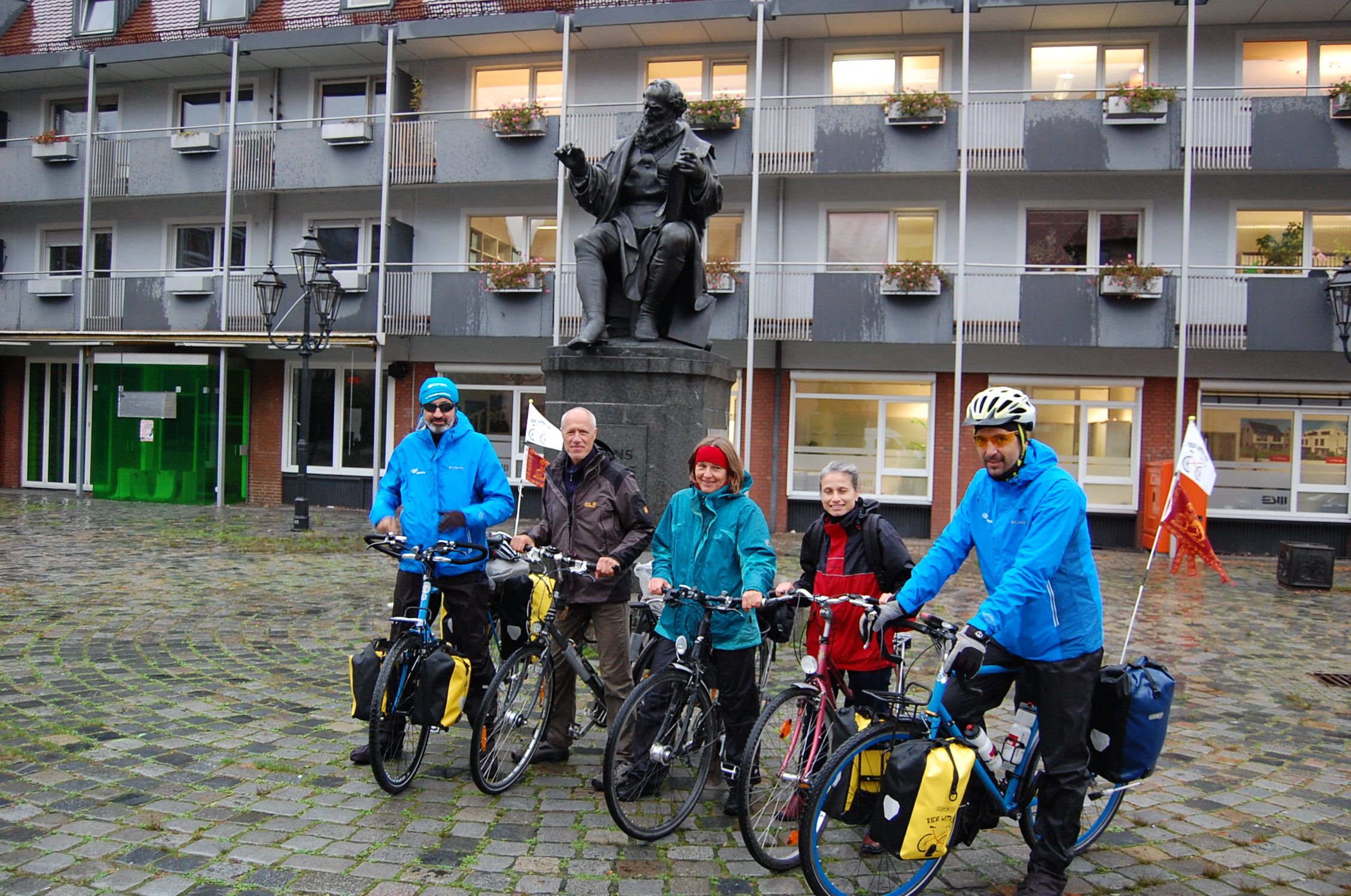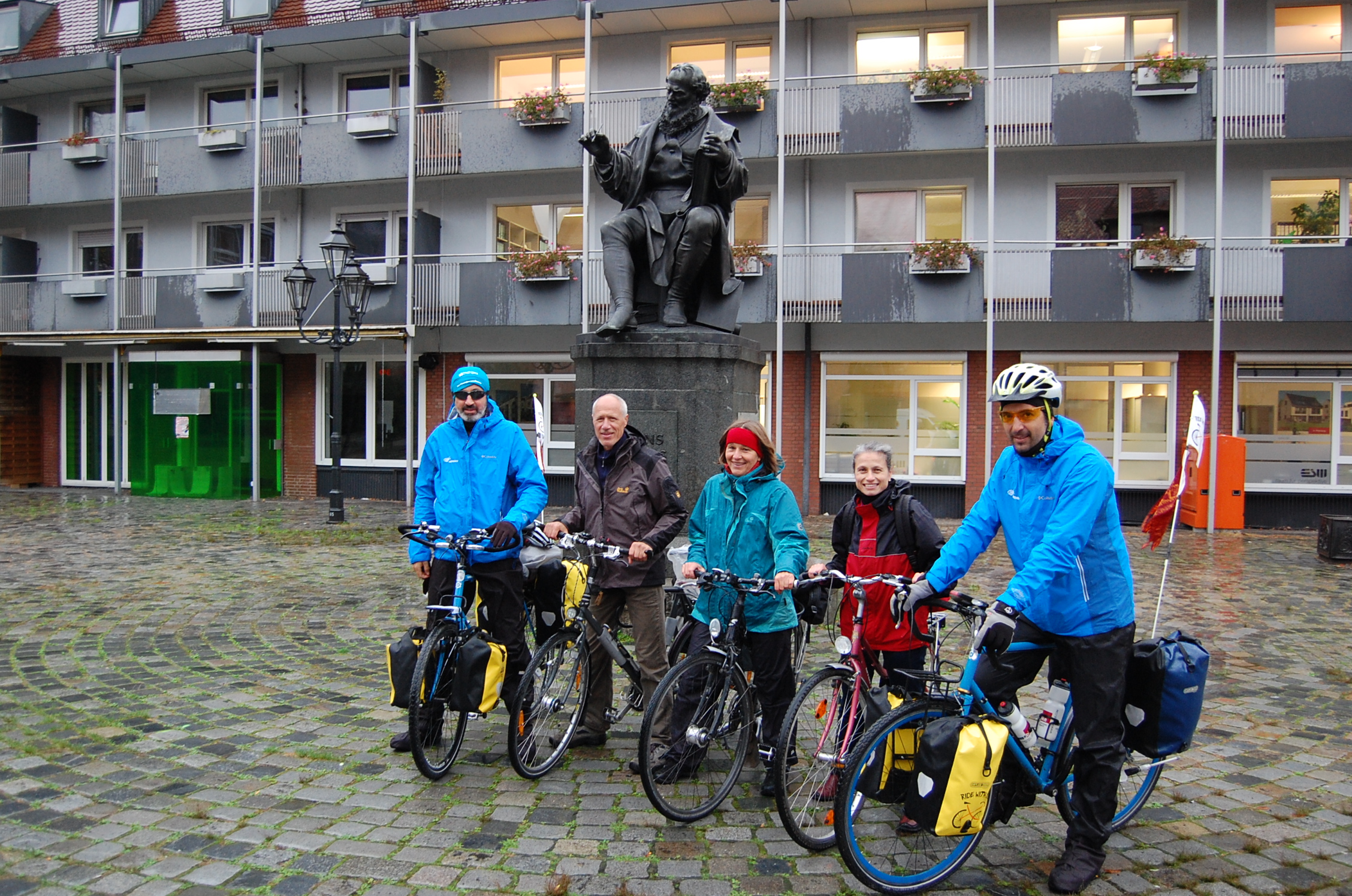 No other option that Claudio riding for two people, pulling Daniele’s bike, for about  6 km where, at the third attempt,  we found someone  who was able to save us (And good for us that in Germany bike shops are more common than Kaffeeklatsch).