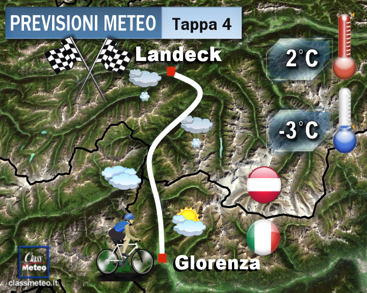 La tappa sarà quasi interamente caratterizzata da cielo nuvoloso o molto nuvoloso.