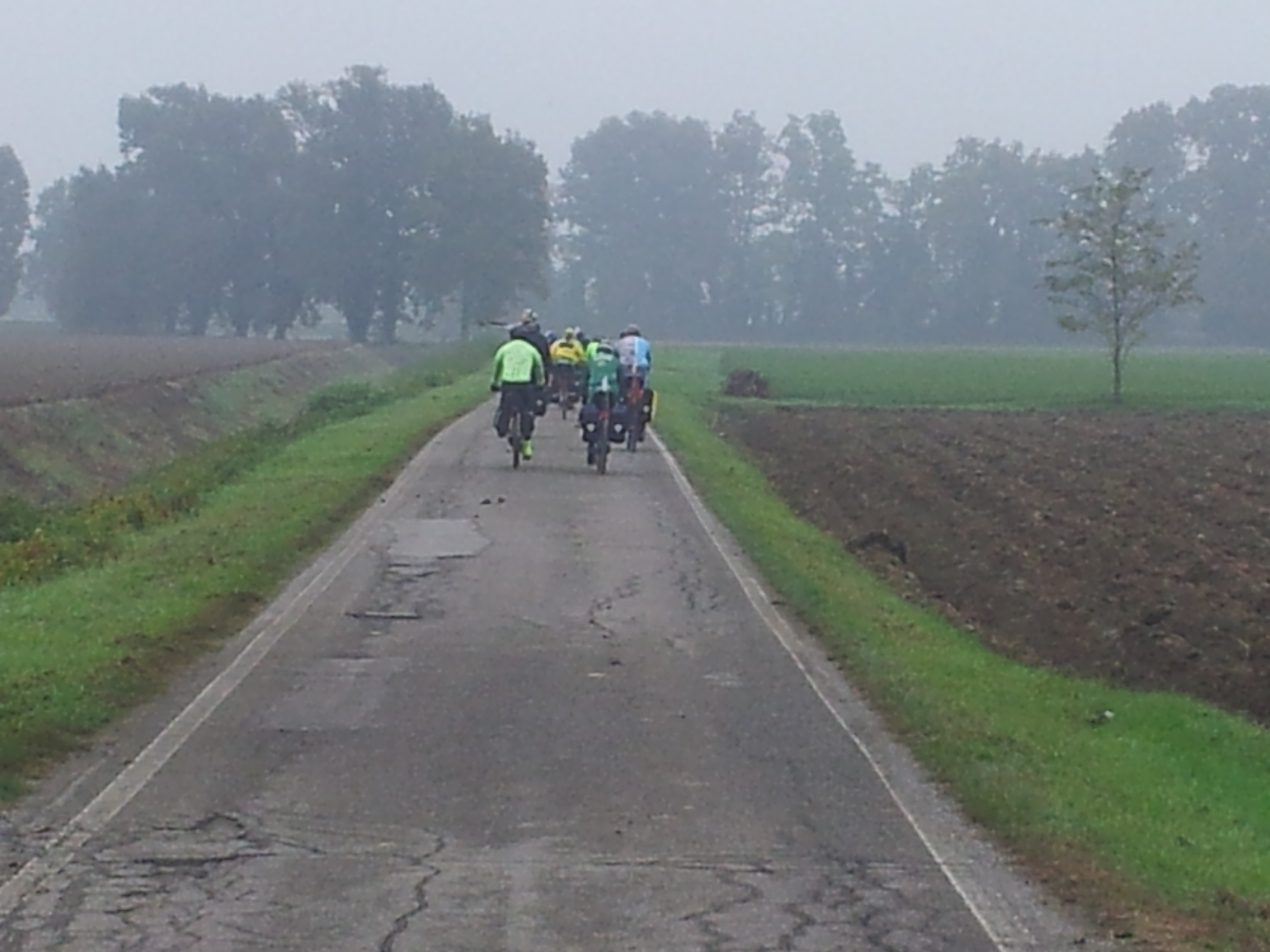 Si uniscono invece a noi Sebastiano e Ausilia, ciclisti che hanno vissuto esperienze fantastiche con la bicicletta, come i 1.600 km dell’Iditarod in Alaska. Non vediamo l’ora di sentire i loro racconti nel corso dei soli 130 km della nostra traccia Pavia-Alessandria-Asti.